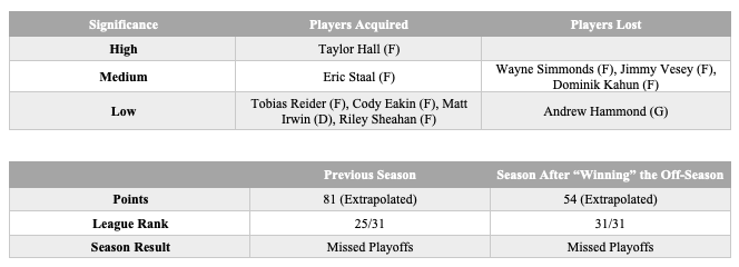 The New Jersey Devils had the best off-season in 2016 in large part due to the one-for-one trade that sent Adam Larsson to the Edmonton Oilers in exchange for Taylor Hall. This trade left nearly everyone in the hockey world confused, and the confusion of this trade has never ended, as Taylor Hall would win the Hart trophy as the leagues MVP just two seasons later, helping New Jersey qualify for their first playoffs since 2012. Unfortunately, the Devils did not see much success outside of the 2017-2018 season, and would accumulate multiple first overall picks despite winning the 2016 off-season.